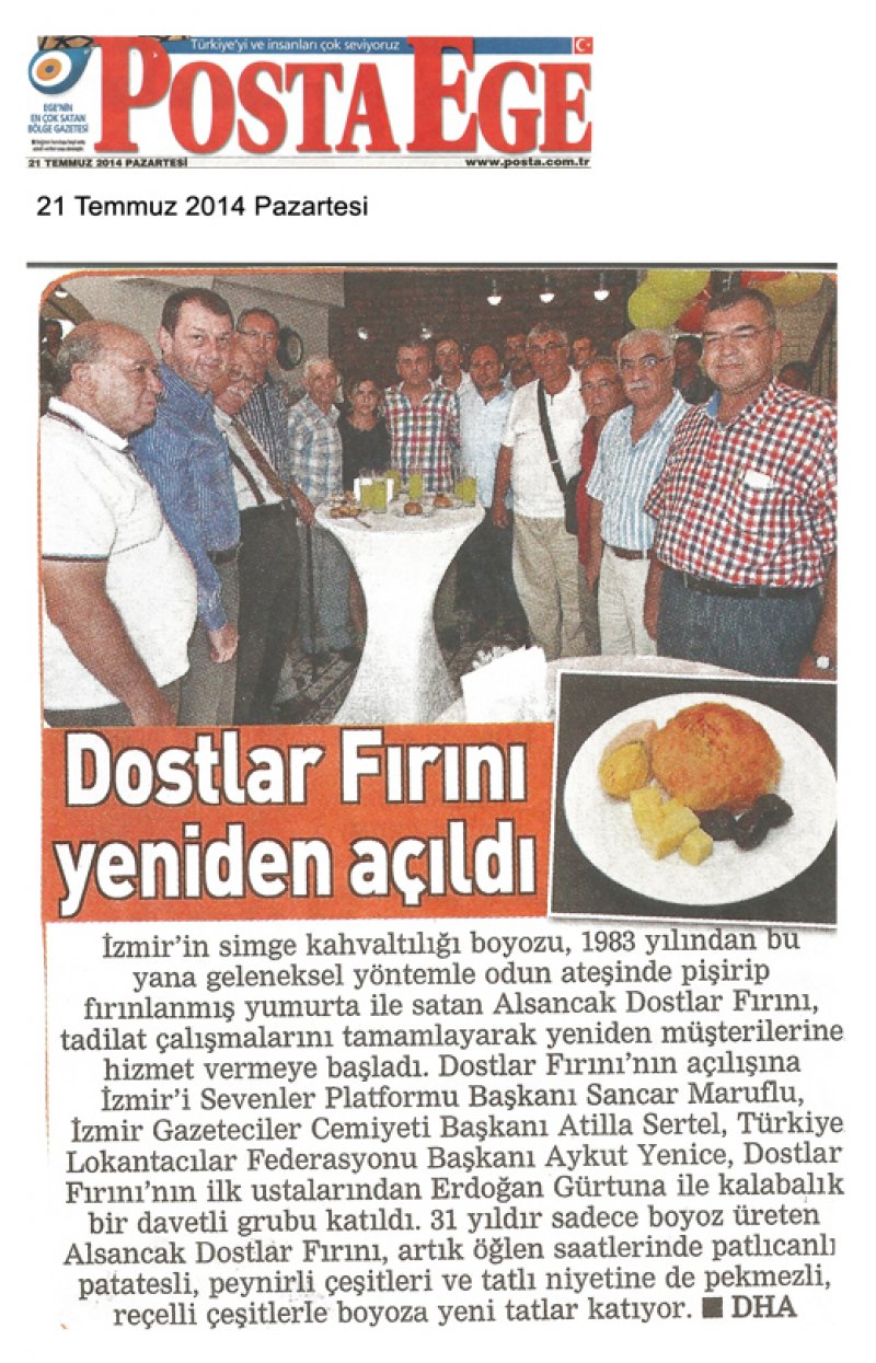İzmir'in simge kahvaltılığı boyozu, 1983 yılından bu yana geleneksel yöntemle odun ateÅŸinde piÅŸirip fırınlanmış yumurta ile satan Alsancak Dostlar Fırını, tadilat çalışmalarını tamamlayarak müÅŸterilerine hizmet vermeye baÅŸladı…
